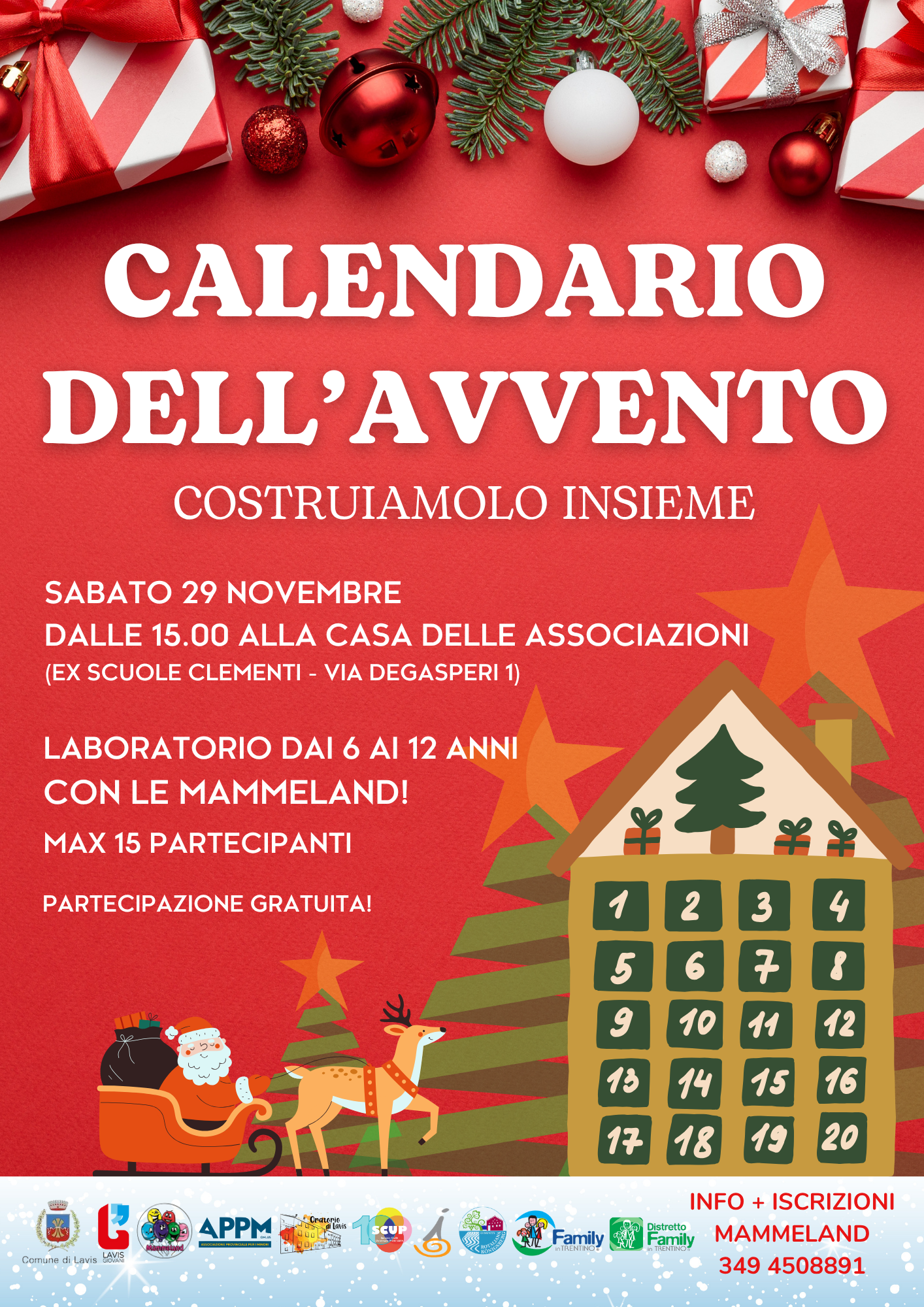 Sabato 29 Novembre dalle 15.00 alla Casa delle Associazioni (Via Degasperi 1) costruiamo Insieme il Calendario dell'Avvento.